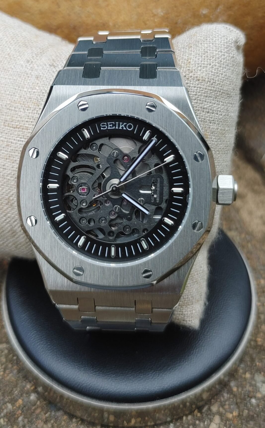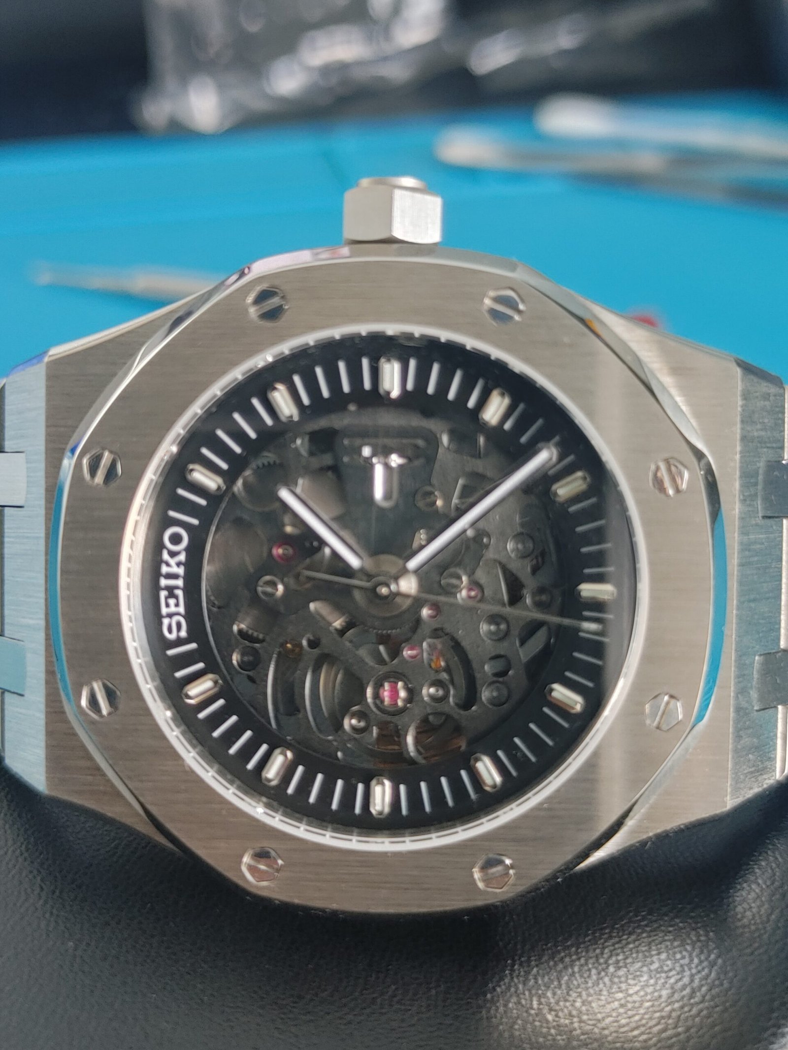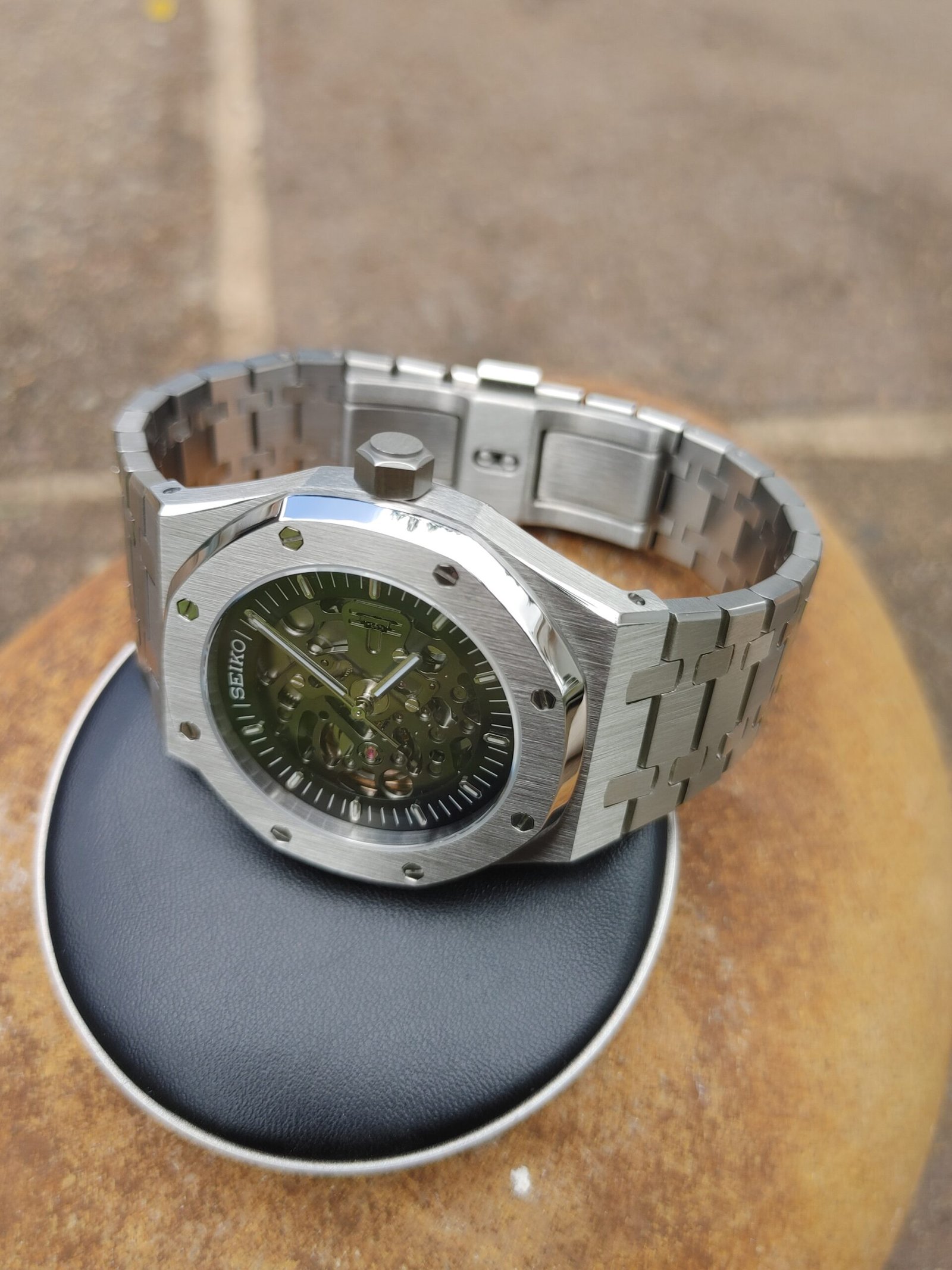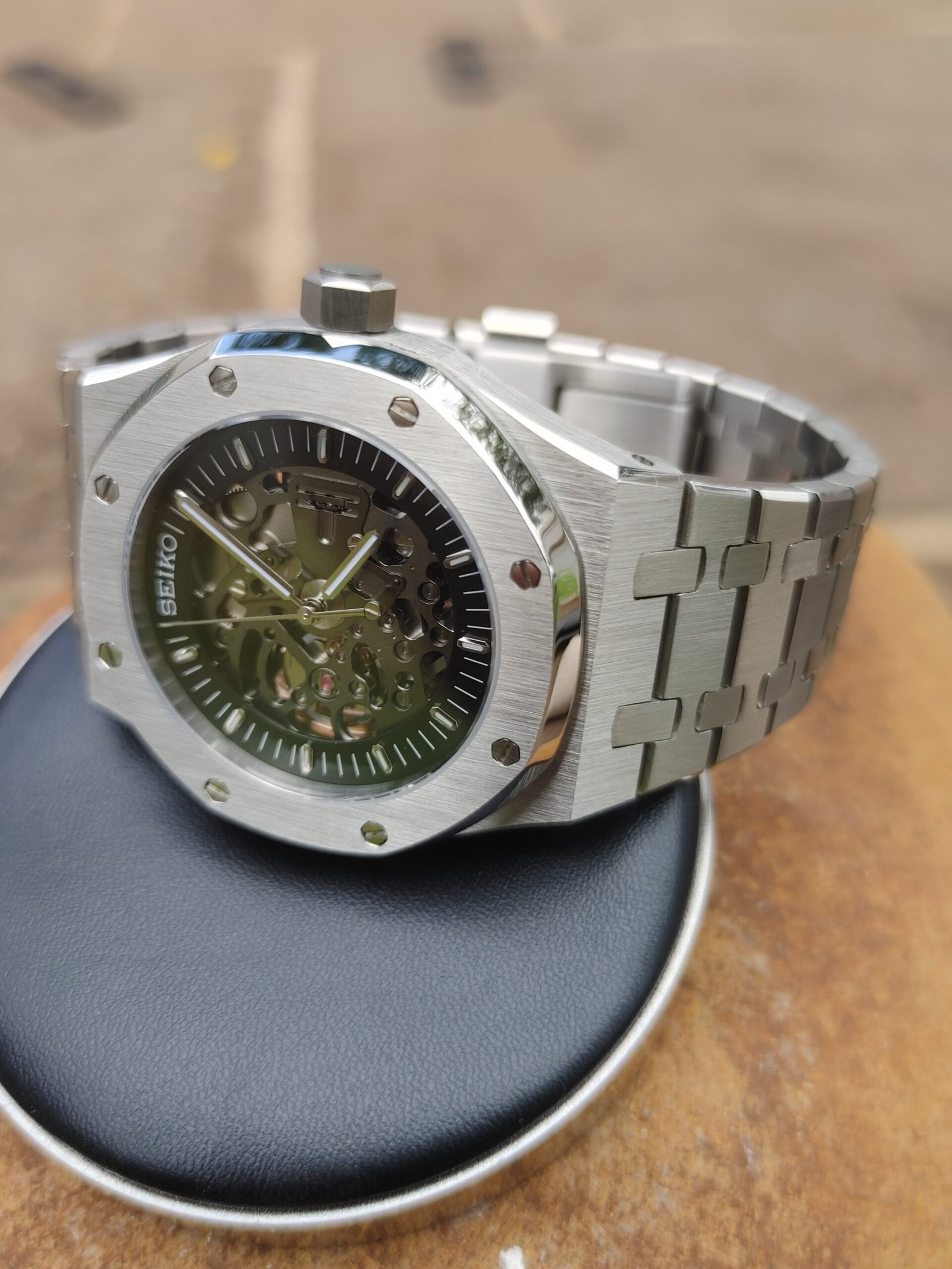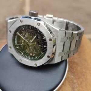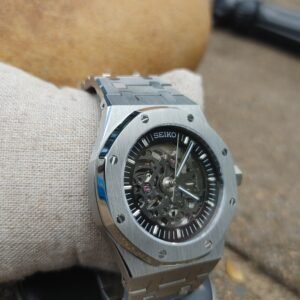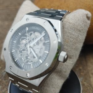 Discover the perfect blend of style and craftsmanship with the SEIKOAK OpenWorked style. Inspired by the legendary design of the Audemars Piguet® Royal Oak®, this stunning timepiece reveals the beauty of its open dial and the precision of its Seiko® movement.